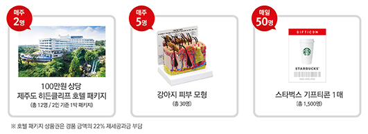 30일간 매일매일 퀴즈 풀고, 100만원 상당의 제주도 호텔 패키지도 받을 수 있는 이벤트가 진행된다.