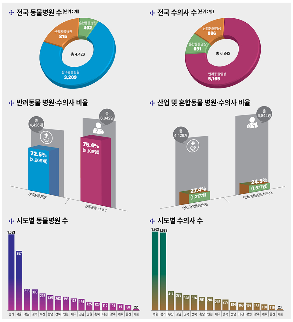 동물병원 총 4,426개·수의사 6,842명