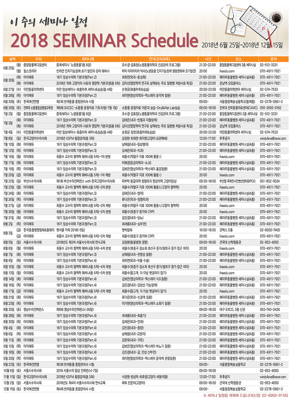 [세미나 캘린더]2018년 6월 25일~2018년 12월 15일