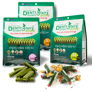 (주)포켄스(대표 구본길)의 기능성 덴탈껌 ‘덴티페어리 클로로필’가 인기에 힘입어 410g 대용량을 출시했다.