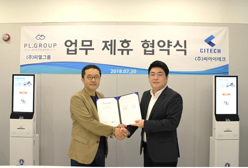 반려동물 토탈 디지털 플랫폼을 제공하는 ㈜피엘그룹(대표 임지현)과 키오스크(무인결제기) 전문 제조업체 ㈜씨아이테크(대표 김종서)가 지난 7월 30일 판교 ABN타워에서 반려동물 관련 사업에 대한 MOU를 체결했다.