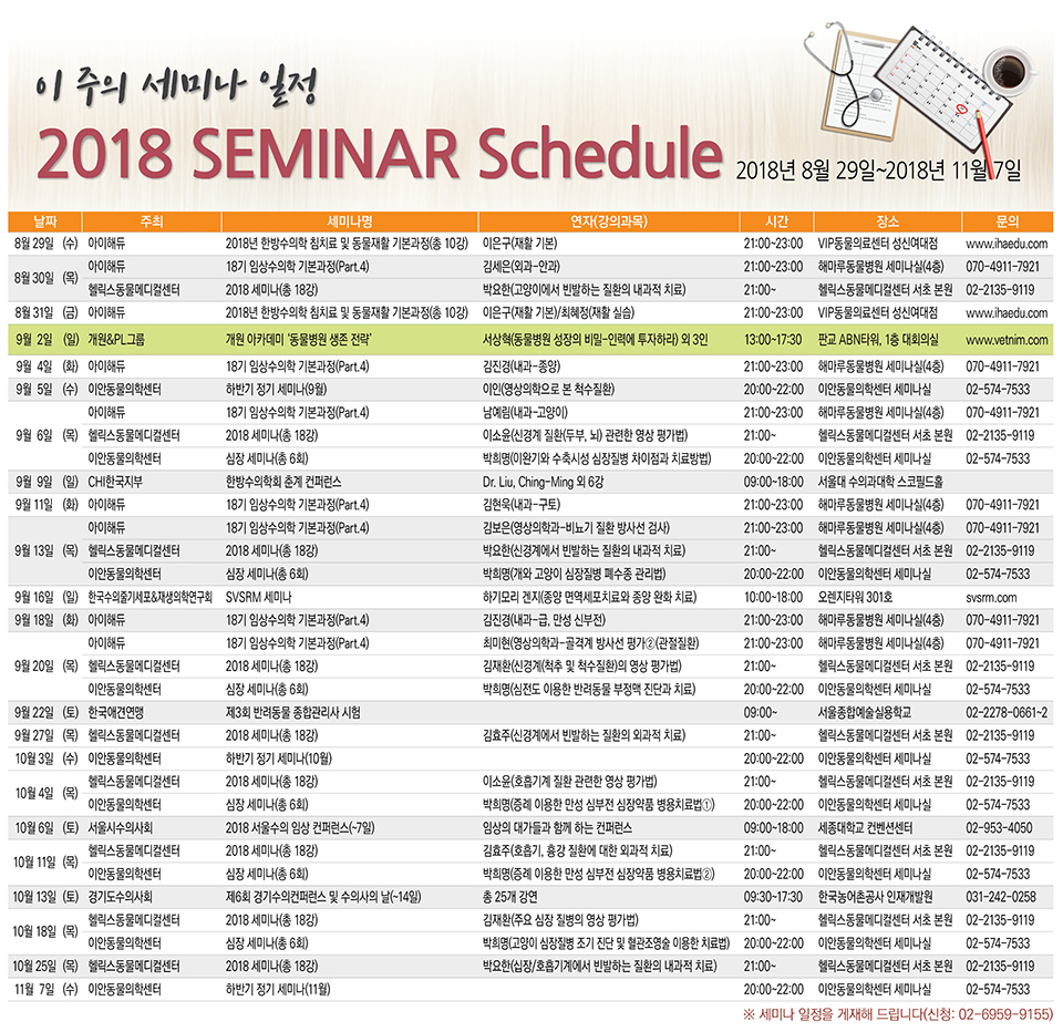 [세미나 캘린더]2018년 8월 29일~2018년 11월 7일