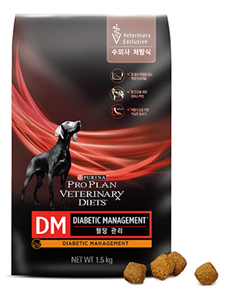 따라서 ‘프로플랜 DM’은 당뇨나 비만, 섬유소반응성 장 질환 등에 적용되는 처방식이다.