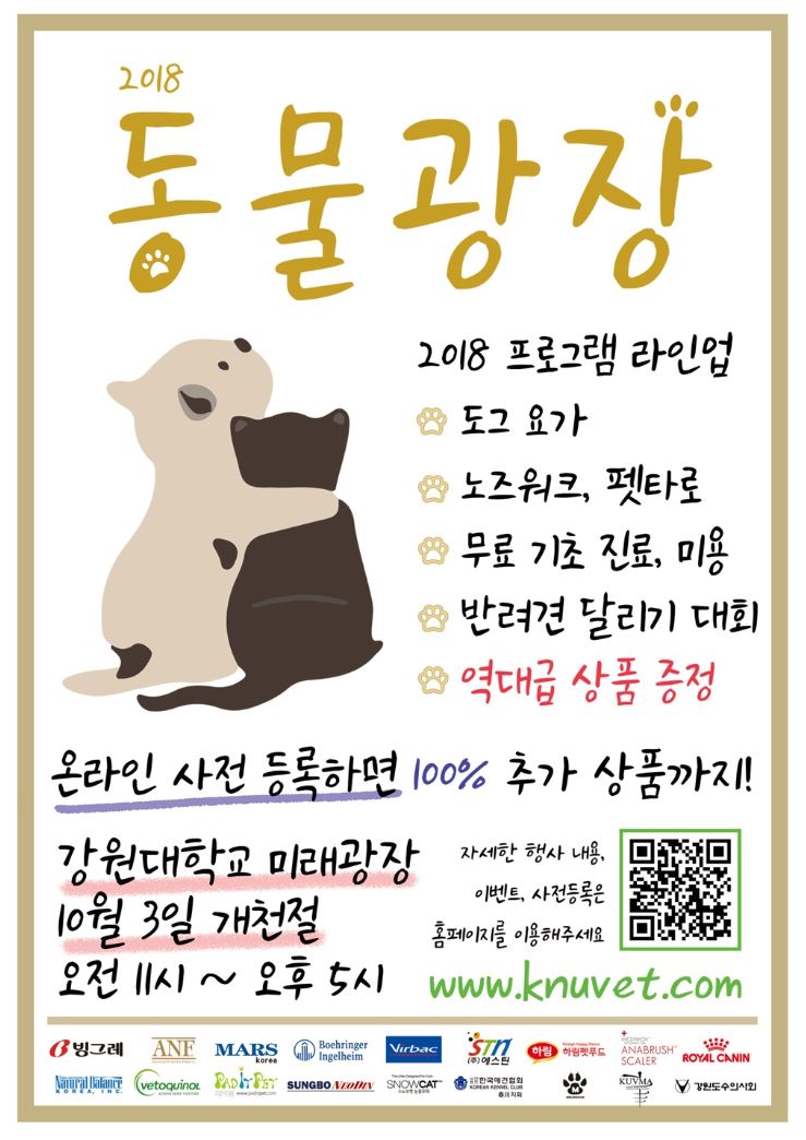 강원대학교 수의과대학 학생회 Voice가 주관하는 ‘2018 동물광장’이 10월 3일 강원대학교 미래광장에서 펼쳐진다.