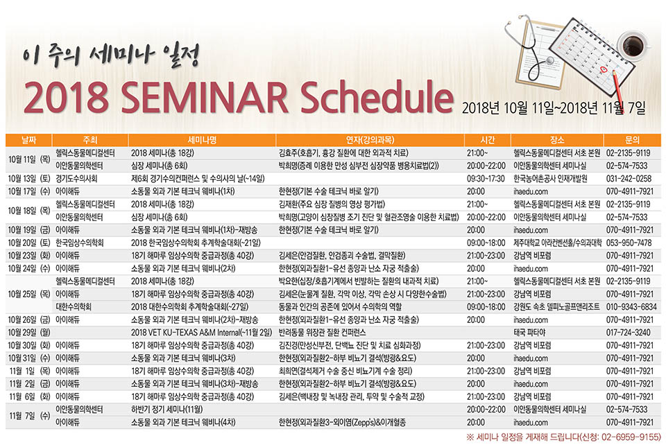 [세미나 캘린더]2018년 10월 11일~2018년 11월 7일