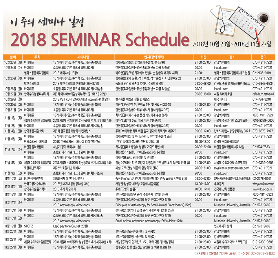 [세미나 캘린더]2018년 10월 23일~2018년 11월 27일