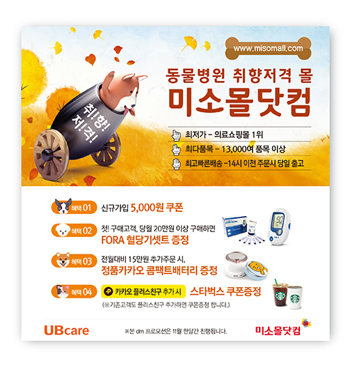 동물병원 전용 쇼핑몰 ‘미소몰닷컴’이 11월 한 달 간 구매자들에게 4가지 혜택을 제공하는 프로모션을 진행 중이다.