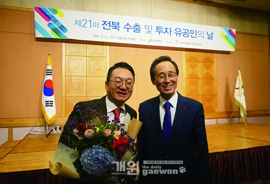 행사는 지난 12월 11일 호텔 르윈 백제홀에서 송하진 도지사를 비롯한 도의회의장과 수출유관기관장 및 포상업체 대표 등 200여 명이 참석해 19개사에 대한 1백만 불, 3백만 불, 5백만 불 수출의 탑 시상 등이 진행됐다.