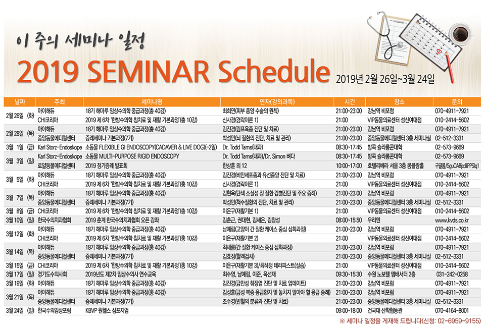 [세미나 캘린더]2019년 2월 26일~3월 24일