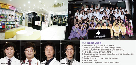 VIP동물병원의 가장 큰 강점은 4명의 원장들이 한마음 한뜻으로 뭉쳐 있다는 것. 원장 서로가 절대적인 신뢰와 상호간의 배려로 같은 곳을 10년 동안 함께 바라보며 지내왔다. 그 결과 2009년에는 성신여대 인근에 2호점을 개원했다.