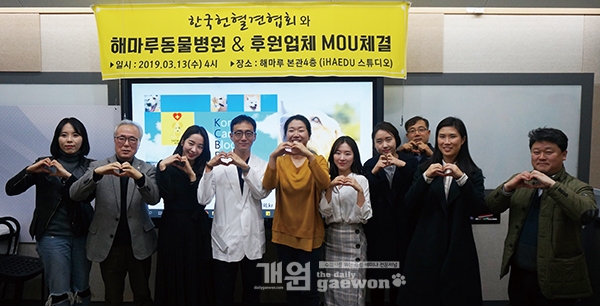 반려견의 헌혈 참여로 공혈견 문제를 해결하자는 취지로 지난해 10월 창립된 한국헌혈견협회(회장 강부성)가 지난 3월 13일 해마루 본관 4층에서 해마루동물병원(원장 김현욱)을 비롯한 후원업체들과 업무 협약을 체결했다.