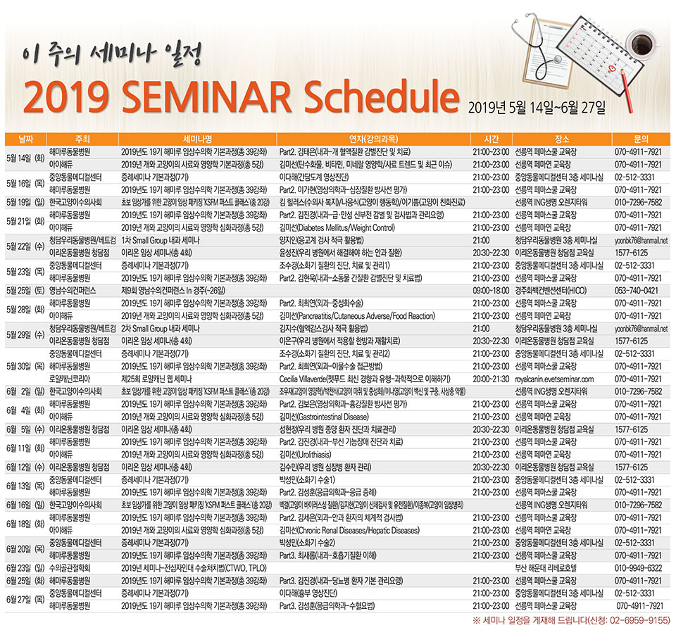 [세미나 캘린더] 2019년 5월 14일~6월 27일