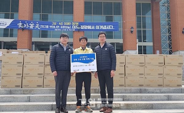 펫푸드 전문기업 사조동아원의 ‘사조펫푸드’가 지난 4월 22일 강원도 고성군 일대 산불 피해 이재민 구호를 위해 반려견 유기농 사료 1톤을 기부했다.