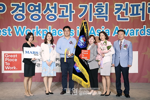 GPTW(Great Place to Work) Institute 주관으로 지난 5월 21일 서울 전국경제인연합회에서 열린 시상식에서 한국마즈는 ‘아시아에서 가장 일하기 좋은 기업’ 수상에 이어 정선우 대표가 ‘아시아에서 가장 존경받는 CEO(Asia’s most trusted CEO)’ 상을, P&O팀 백은엽 부장이 ‘아시아 GWP 공헌상’을 받으며 3관왕에 올랐다.