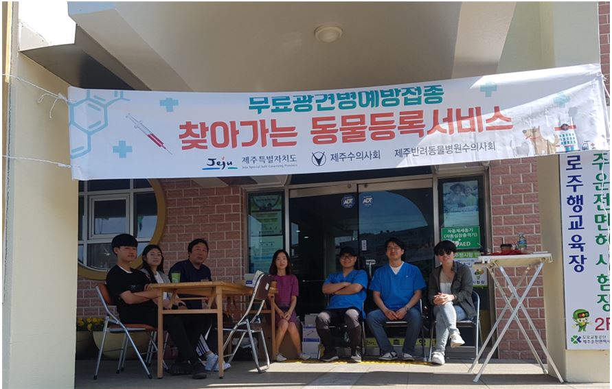이번 서비스에는 김용훈 반려동물분과장과 12명의 반려동물수의사가 참여해 ‘2019년 제주 반려동물페스티벌’ 및 제주시, 서귀포시 일대의 읍‧면지역 등 총 4일간 실시, 총 600여 마리의 동물등록이 이루어졌다. 또한 800여 마리에 대한 광견병백신 무료접종도 실시했다.