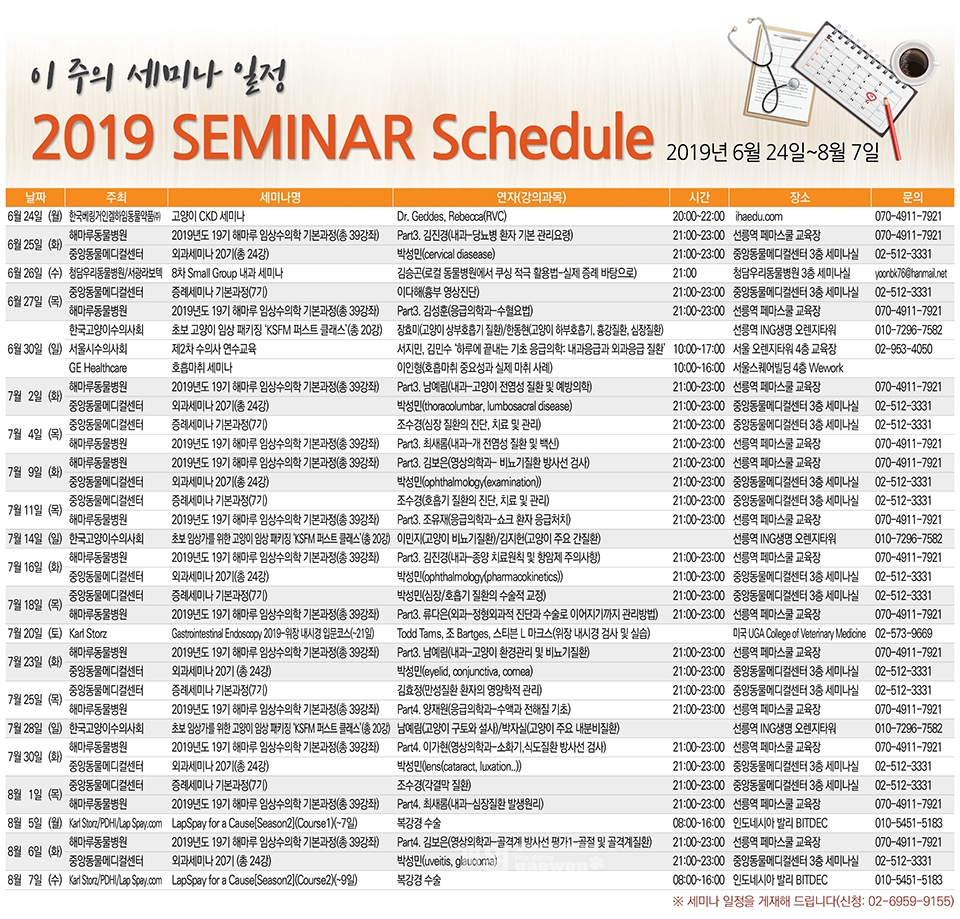 [세미나 캘린더] 2019년 6월 24일~8월 7일