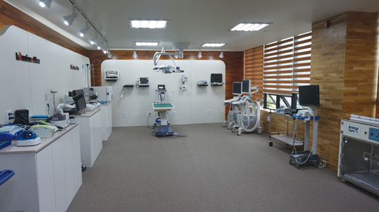 ‘한미전시관’에는 초음파 장비와 디지털 엑스레이 등 고가의 최첨단 장비들이 동물병원 시스템에 맞춰 진열돼 있다.