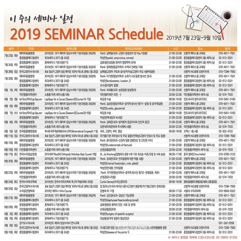 [세미나 캘린더] 2019년 7월 23일~9월 10일