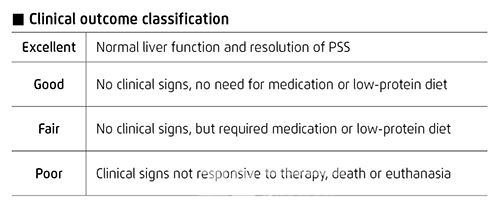 liver biopsy에서는 Portal oval cell hyperplasia, Intralobular arteriolar replication, Mild-moderate vacuolar hepatopathy, Lobular hypoplasia가 확인 되었으며, 이는 insufficient portal blood supply와 관련된 것으로서 portal hypertension 및 acquired PSS에 의한 조직학적 변화로 생각할 수 있었다.