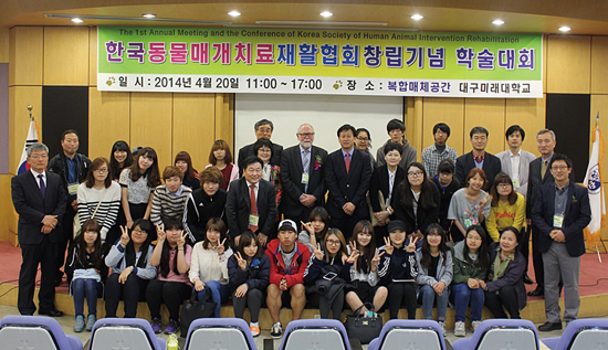 한국동물매개치료재활협회(회장 이예숙)가 4월 20일 대구미래대학교에서 동물매개치료 분야의 세계적 석학인 Dr. Dennis C. Turner를 비롯해 국내 유명 인사들을 초청한 가운데, 창립기념 학술대회를 개최했다.
