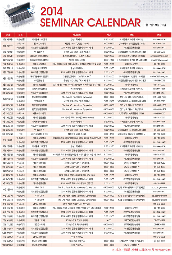 [캘린더] 세미나 캘린더(8월 5일~11월 31일)