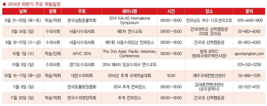 이밖에도 각 지역 수의사회와 임상학회들이 추계 학술대회를 계획하고 있어 일정이 발표 되는대로 보도할 예정이다.