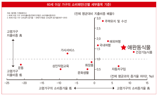 지난해 LG경제연구원이 내놓은 ‘한국 시니어 세대의 소비패턴’이라는 보고서에 따르면 2007년부터 5년간 전체 가구 대비 지출금액 증가율과 지출비중이 높은 품목을 조사한 결과, 60세 이상 가구의 경우 반려동물 관련 항목에 대한 고령층의 소비 선호가 높은 것으로 나타났다. 이러한 결과는 고독감을 달래거나 관계 속에서 정서적 안정을 찾고자 하는 고령자들의 니즈가 반영된 것으로 보인다.