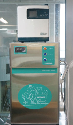 병원내의 위생관리, 기기소독, 피부질환 예방과 치료, 탈취 등을 목적으로 개발된 ‘바이오사이더’는 사람과 동물에게 안전한 미산성차아염소산수(소독수)를 만들어 내는 장치로 세균, 곰팡이, 효모, 바이러스, 세균아포 등 폭넓은 살균효과를 자랑한다.