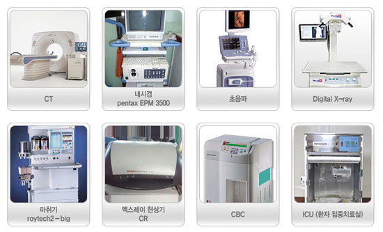 진료분야는 내과, 외과, 영상의학과(X선촬영, 초음파, CT, 내시경), 안과, 치과 등이다.