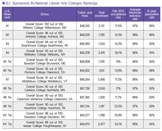 그리고 우리에게는 잘 알려지지 않았지만 교양학부 순위에 오른 학교는 미국 현지에서도 입학하기 어려운 대학으로 알려져 있다. 교양학부 대학의 학생 수는 2,000명 수준이다.